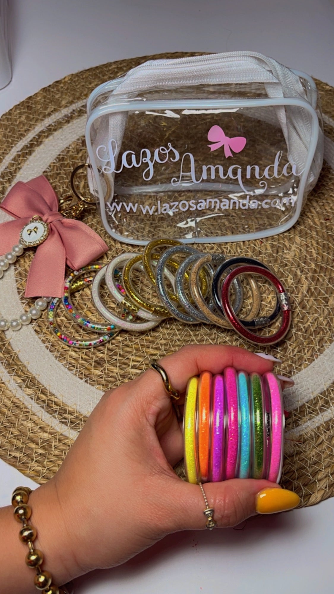 Incluye 18 pulseras surtidas y estuche con llavero para almacenaje y cuidado 🎀💕