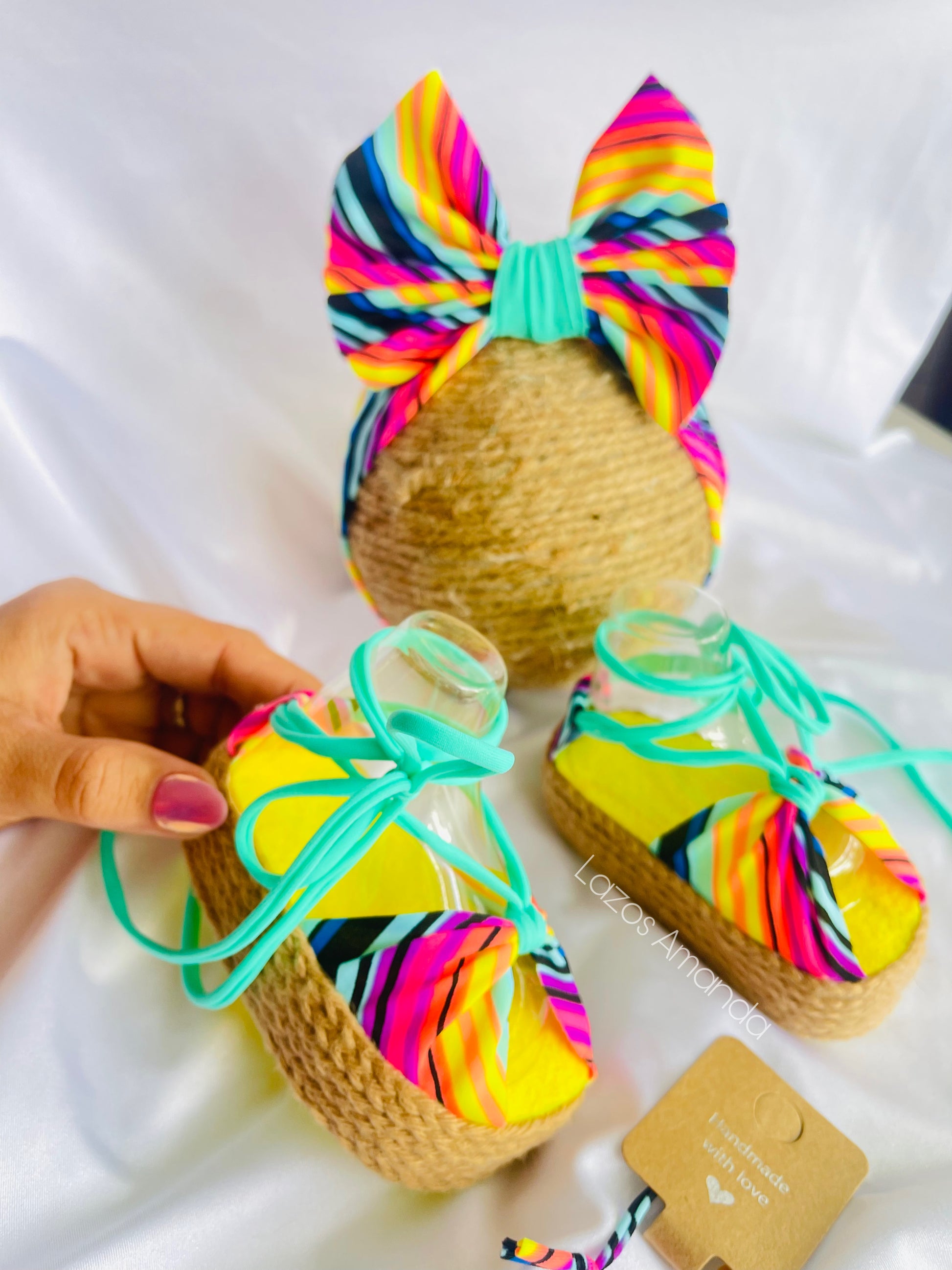 Sandalias plataformas para bebés. No pesan y son sumamente cómodas. Las trabajamos desde 3meses en adelante 🎀. Obtén las tuyas. El set incluye pulsera, sandalias y lazo.✂️