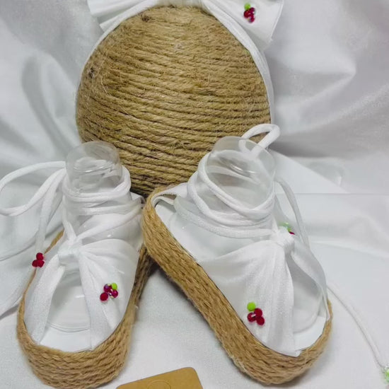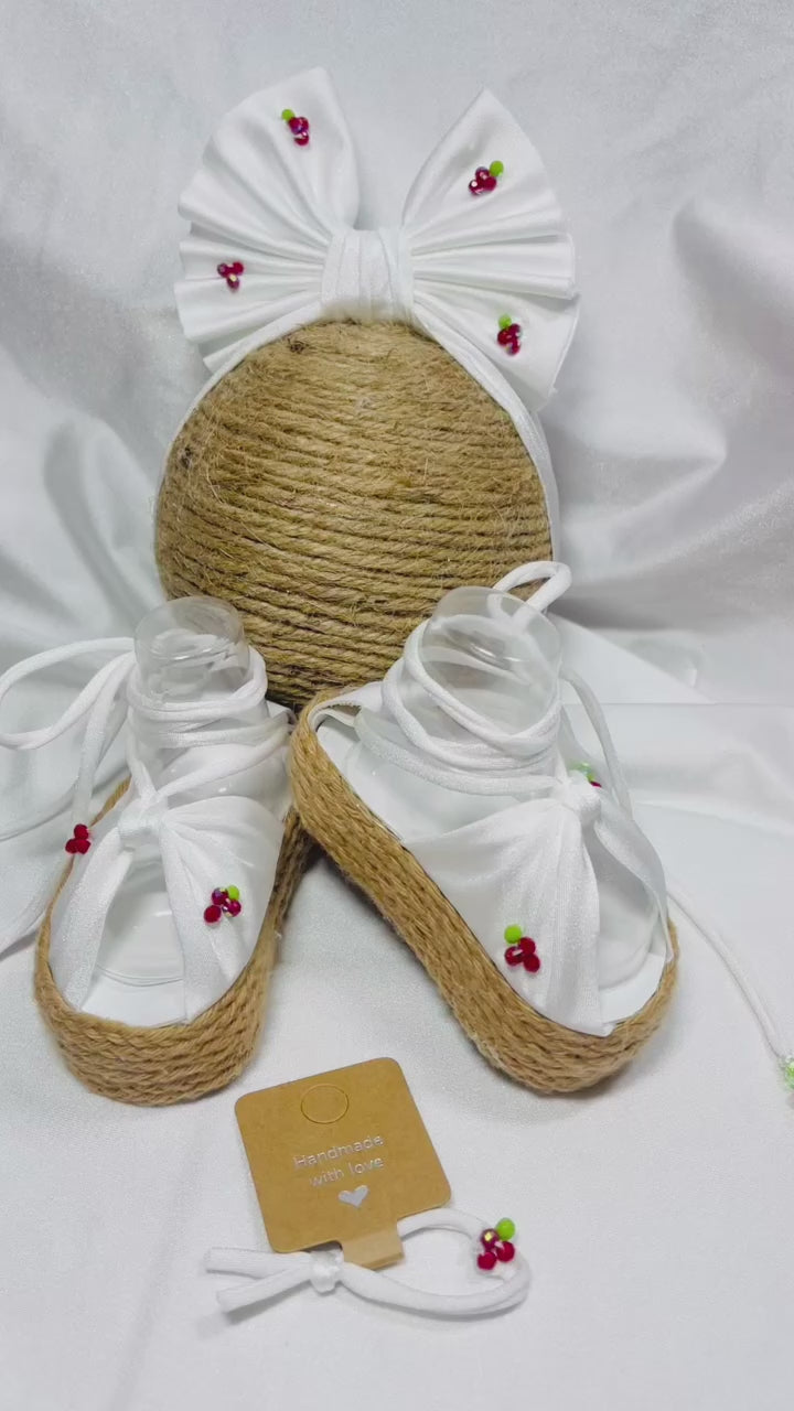 Hermoso y delicado set de sandalias bordado completamente a mano 🍓Incluye Lazo, Sandalias plataformas y pulsera 🎀